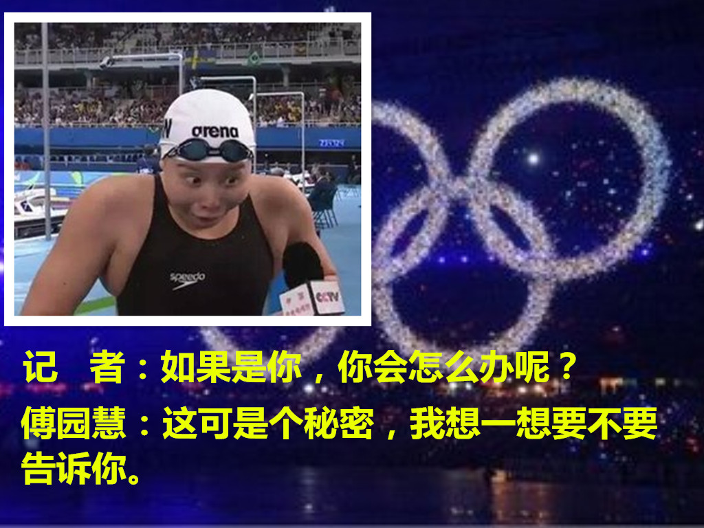 在这样的一场勇气和实力的对抗中,出现了一个元气少女——傅园慧(女子100米仰泳半决赛中排名第三)。