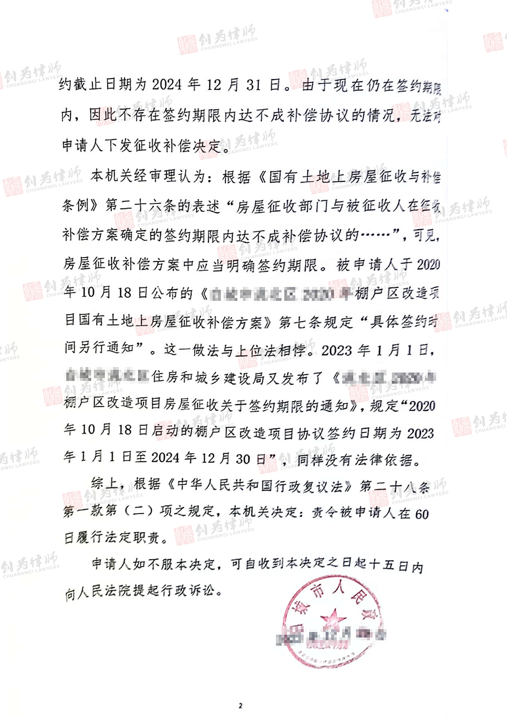 2023年1月1日,住房和城乡建设局又发布了《棚户区改造项目房屋征收关于签约期限的通知》,规定“2020年10月18日启动的棚户区改造项目协议签约日期为2023年1月1日至2024年12月30日”,并没有法律依据。
