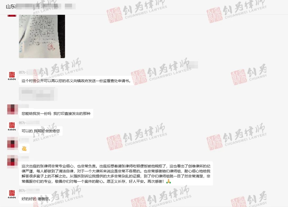 庭审结束后,北京创为律师团队在案件中展现出的专业素养、敬业精神和对当事人的贴心服务,让当事人深受感动。在维权群中特别表达了对北京创为律师团队的高度认可与衷心的感谢。