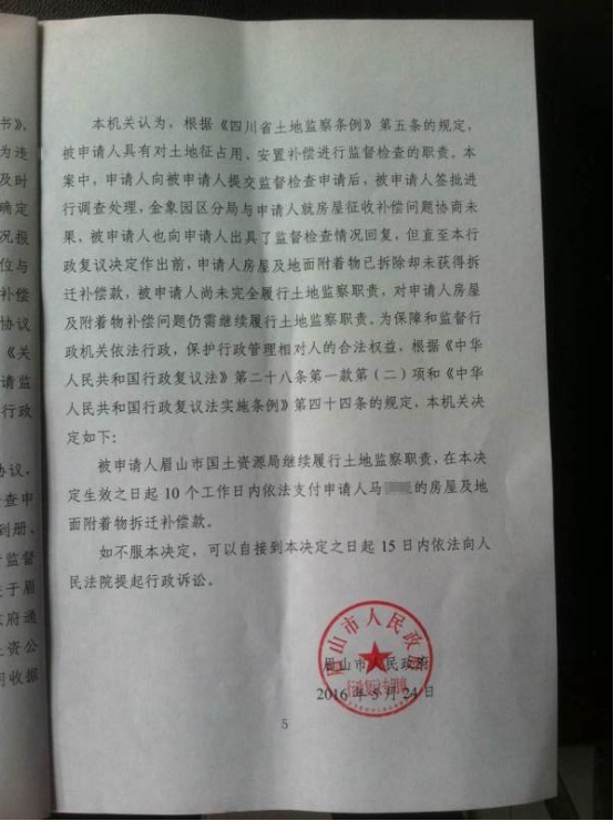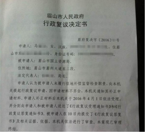 复议机关:眉山市人民政府