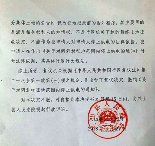 时隔半年,经过征收方的周旋,李先生并没有等来任何结果,反而在昭君镇人民政府的一份通知中被断了电。于是便紧急联系到了创为律师进行了委托。 创为律师接到了李先生的案件后,便立即着手制定了配套的维权策略,和相应的部门展开了一场权益搏斗,对《关于对昭君村征地范围内停止供电的通知》提出了异议。