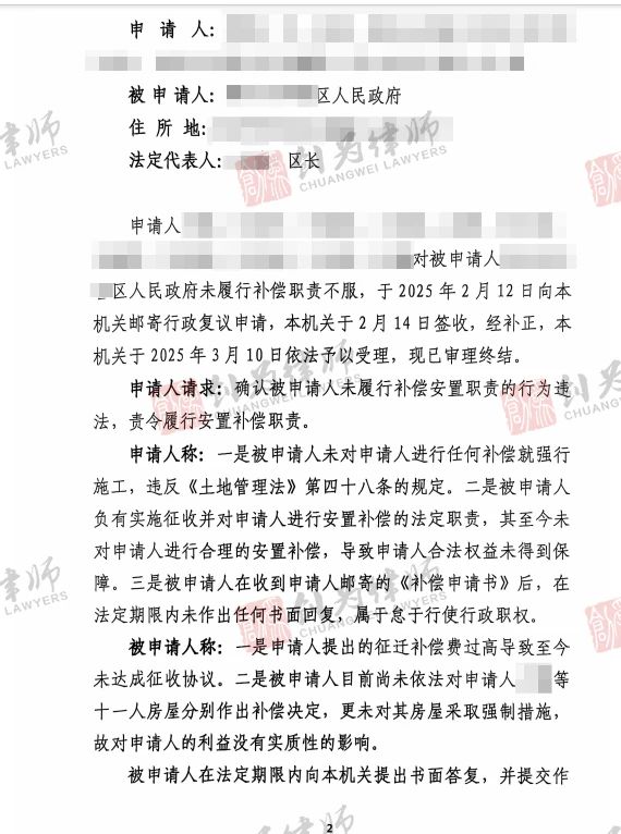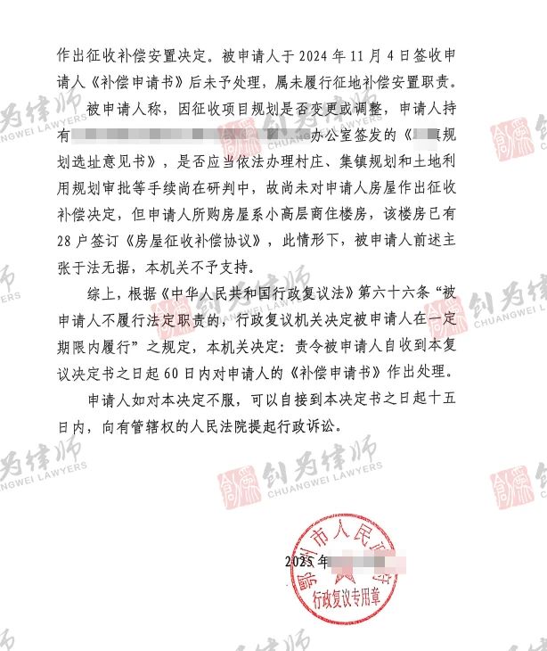 在行政复议过程中,北京创为律师团队据理力争,指出征收方的违法行为,并引用《土地管理法》《土地管理法实施条例》等相关法律法规,强调征收方应当依法履行征收补偿职责。