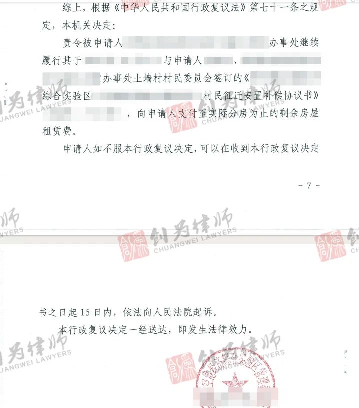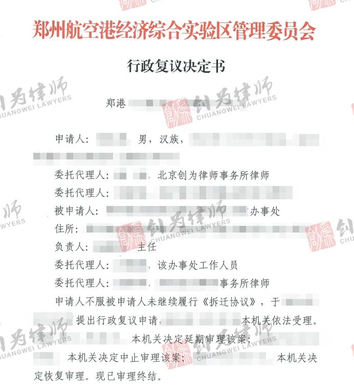 2024年9月,北京创为律师团队正式向上级复议机关申请行政复议。最终,在复议机关的支持下,这份长达十年的拆迁补偿纠纷案终于迎来了转机。