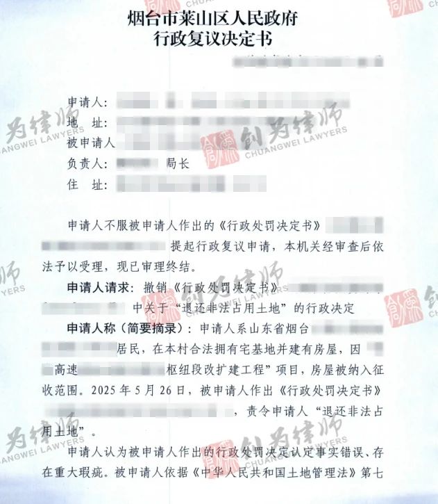 面对复杂的土地性质争议和行政程序问题,北京创为律师团队以 "精准定位争议焦点、全面挖掘案件细节" 为原则,展开了多维度的维权工作。并立即向上级复议机关提起复议且坚持征收方的行政处罚存在多处明显不合理与违法之处: